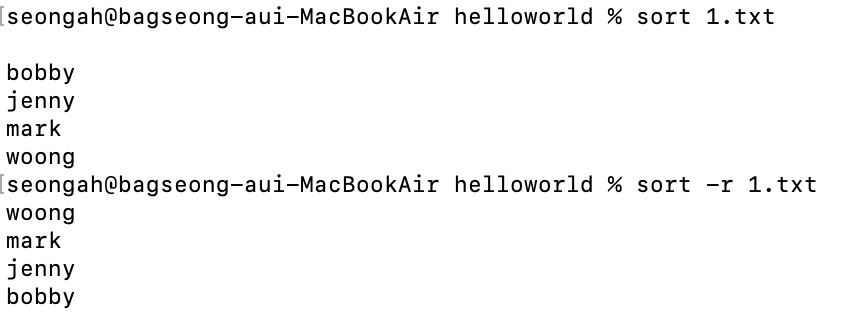 해당 파일을 오름차순으로 정렬(디폴트)하거나, 내림차순으로 정렬하여 출력해준다.