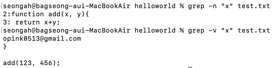grep -v "문자열" test.txt # 해당문자열이 있는 line의 내용을 제외한 모든 내용 출력