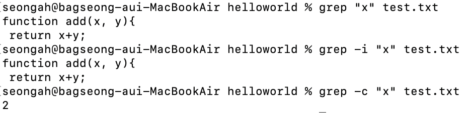 grep -c "문자열" test.txt # 해당 문자열이 있는 line이 몇 개인지 출력